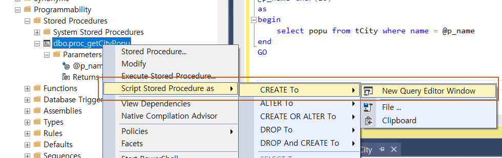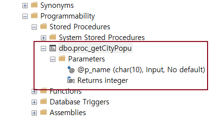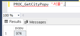 EXEC PROC_GetCityPopu @p_name ='서울';