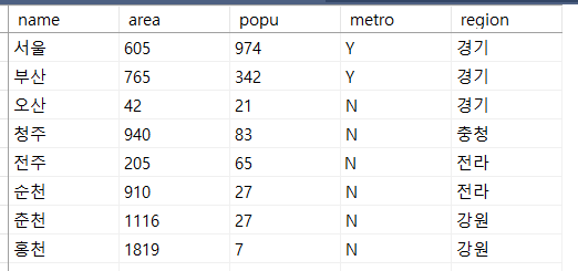 insert into tCity values('서울',605,974,'y','경기');