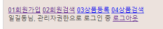권한이 관리자 --> 회원가입, 회원검색, 상품등록, 상품검색