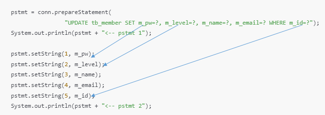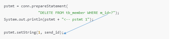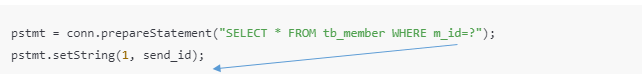 pstmt = conn.prepareStatement("SELECT * FROM tb_member WHERE m_id=?");