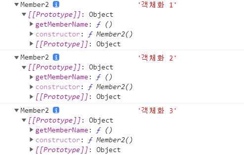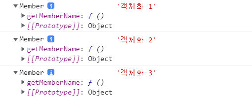 선언된 함수 내부에 this키워드로 된 대상들은 멤버로 만들어 객체화가 된다.