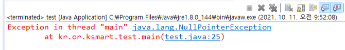 객체가 할당이 안되어 있을 때 발생하는 에러.