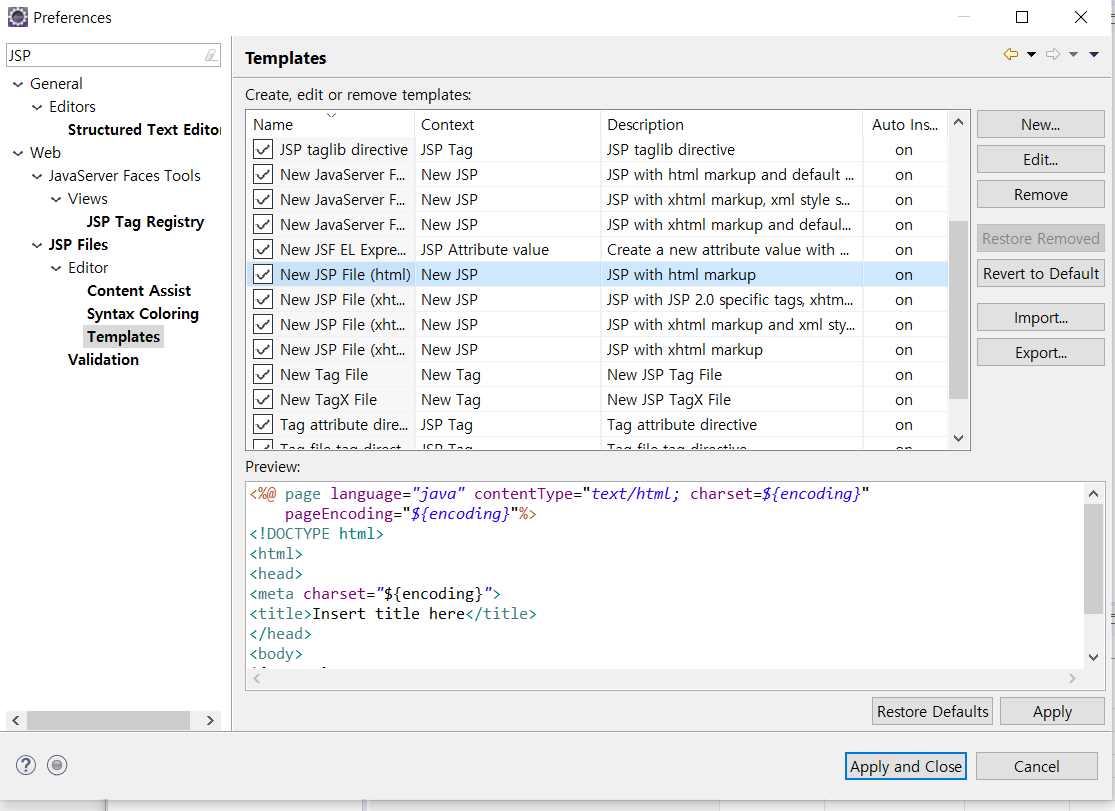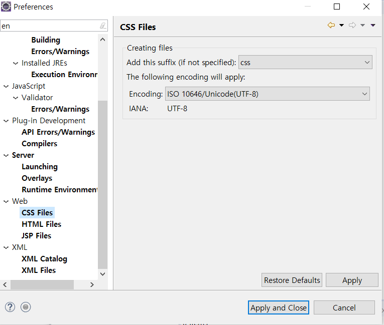 CSS FILES, HTML FILES, JSP FILES 에서 인코더를 UTF-8로 설정해주기