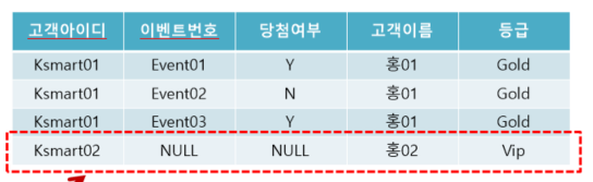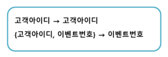 (고객아이디, 이벤트번호) 가 고객이름 결정 o