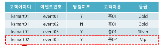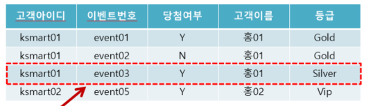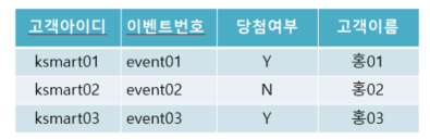 (고객아이디, 이벤트번호) 가 당첨여부 결정 o