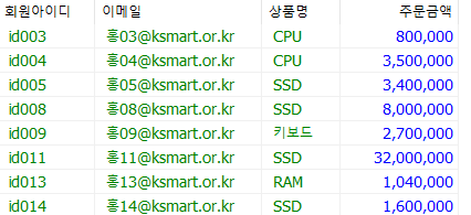 ORDER BY 회원아이디 ASC;