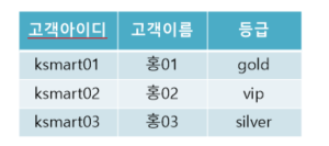 고객아이디로 고객이름과 등급을 결정한다.