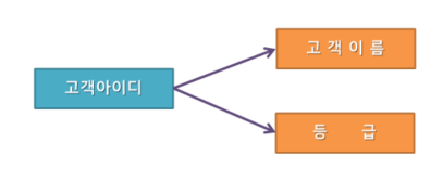 고객아이디 → 고객이름 / 고객아이디 → 등급