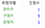 1. 회원의 레벨 별 인원을 조회하시오.