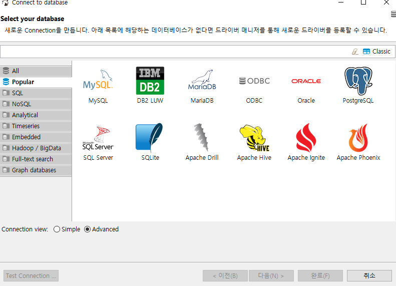 2. 데이터베이스 -> 새 데이터베이스 연결