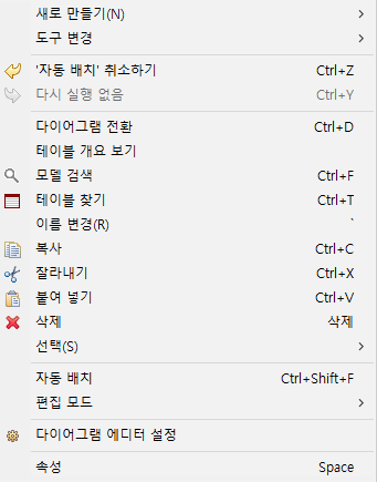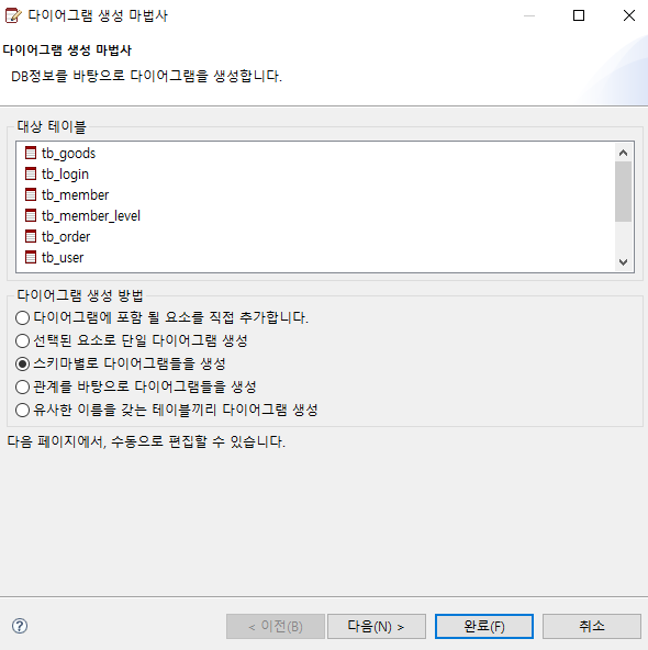 5) 왼쪽에 있는 테이블이 다이어그램으로 생성된다.