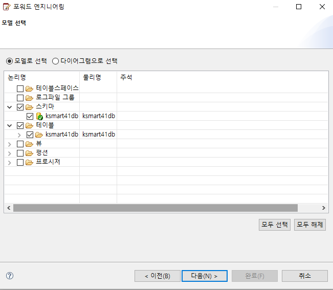 소유자 설정 : 스키마 목록에서 선택 -> ksmartdb