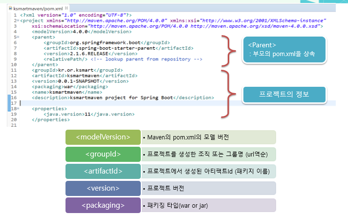 pom.xml : maven에 대한 설정 정보가 들어가 있다.