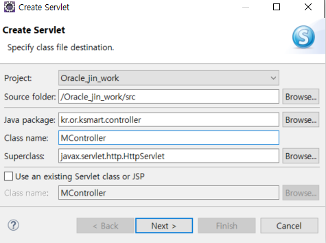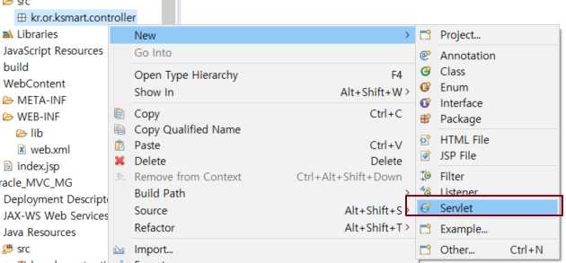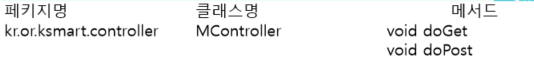 kr.or.ksmart.controller.MController servlet 클래스내 doGet 또는 doPost 자동 호출된다.