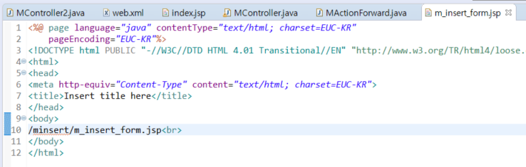 | 03-01 조건문 /Min/m_insert_form.ksmart_m 04-01 조건문 /Min/m_insert_form.ksmart_m /minsert/m_insert_form.jsp<--- forward.getPath()[jsp 이동경로] MController.java |