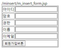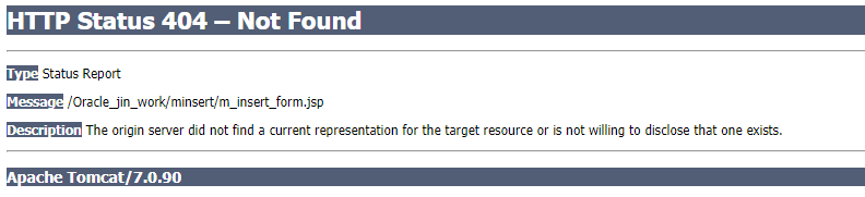 화면 : /minsert/m_insert_form.jsp 경로를 찾을 수 없기 때문.