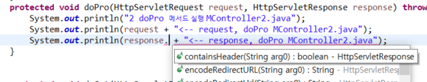 System.out.println(response + "<-- response, doPro MController2.java");