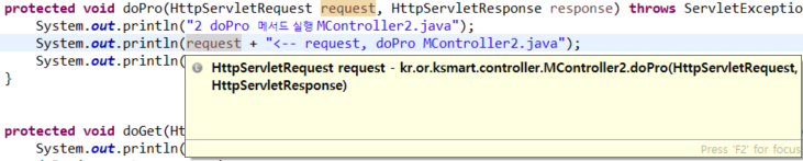 System.out.println(request + "<-- request, doPro MController2.java");
