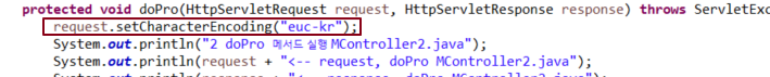 2) get, post 방식모두 doPro 메서드를 거친다. 가장 상단에 인코딩을 추가.