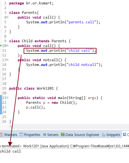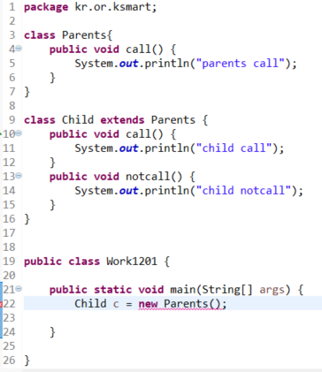 서브클래스가 객체화 되었더라도 참조타입에 의한 멤버만 접근이 가능하다.