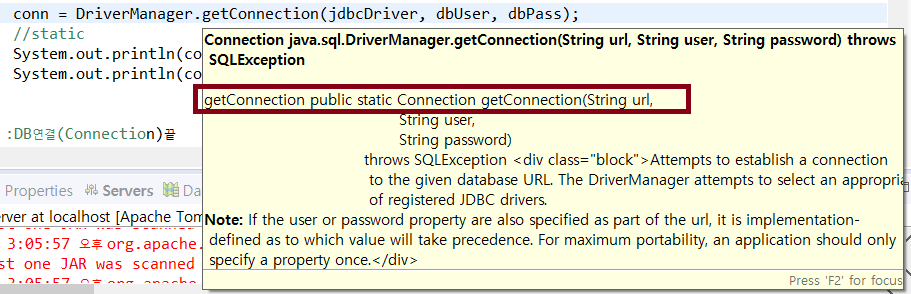 | 01단계 :드라이버 로딩(mysql 드라이버 로딩) 02단계 :Connection객체로 DB연결 1)ip 2)port번호 3)db접속id 4)db접속비번 5)db명(sid,service name) 03단계 :Query실행을 위한 준비 ( statement 또는 PreparedStatement객체생성) 04단계 :Query실행 05단계 :Query실행결과 사용 (insert,update,delete의 경우 생략 가능단계) 06단계 :statement 또는 PreparedStatement객체 종료(close()) 07단계 :DB연결(Connection 객체) 종료(close()) |