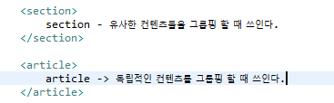 div를 제외한 태그들은 시멘틱 테그이며, html5에서 사용용도가 정해진 태그이다.