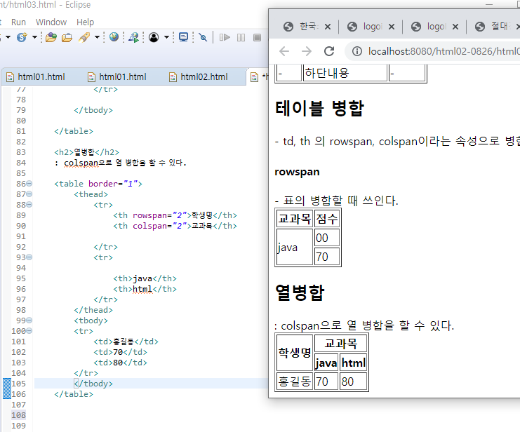<th colspan="3"></th> 오른쪽으로 총 3열을 병합한다.