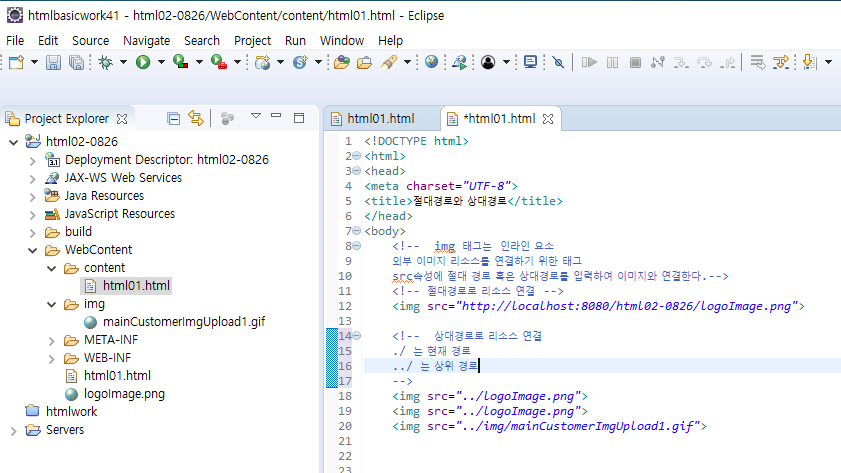 상대경로 : 현재 보고 있는 (열려있는) 파일 기준으로 시작되는 경로