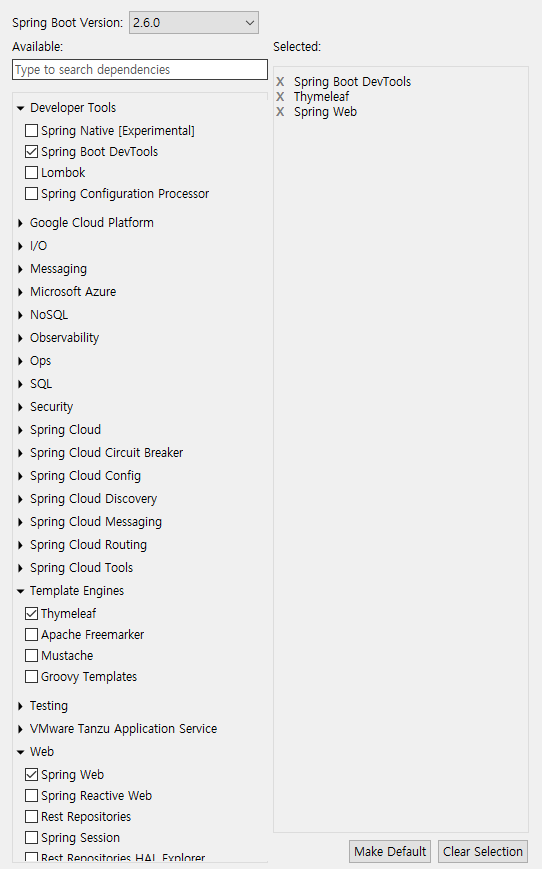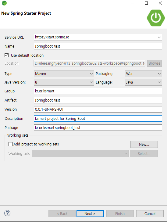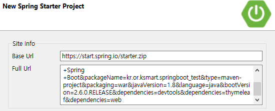 프로젝트 정보가 표시되며 스프링에서 사용되는 여러 가지 라이브러리를 설정해 다운로드 가능