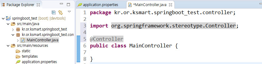 maincontroller클래스 생성후 @controller 입력.