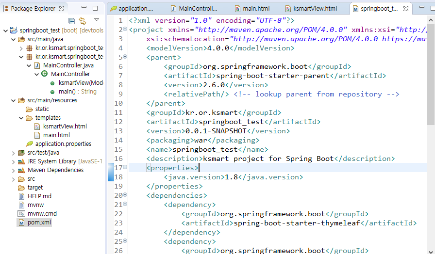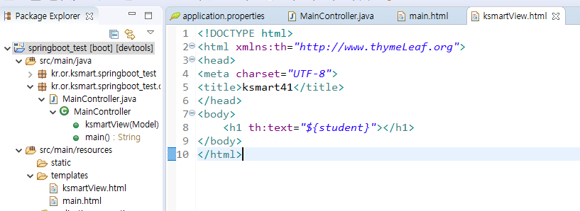 return "ksmartView"; 을 아래와 같이 변경해준다.