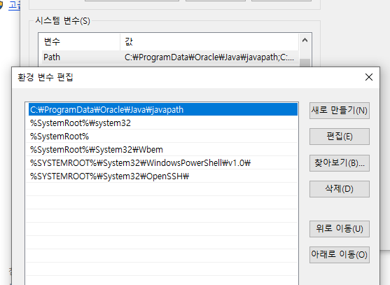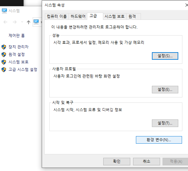 내컴퓨터 -> 속성 -> 고급시스템설정 -> 환경변수