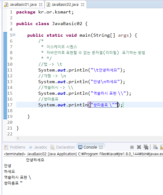 java에서 표현할 수 없는 문자를 표현하기 위해 사용.
