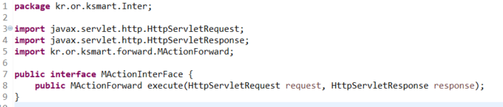인터페이스 : MActionInterFace 내에 execute 추상메서드 선언