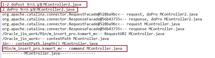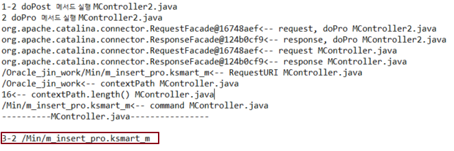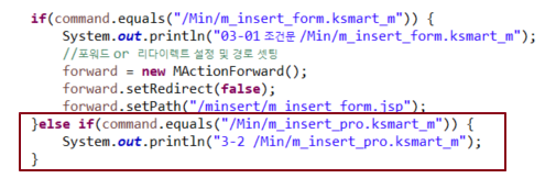 4. else if으로 command에 /Min/m_insert_pro.ksmart_m 주소값이 담긴다.