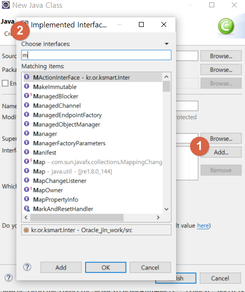 MActionInterFace 인터페이스를 추가하면 implements 후 execute 추상메서드 구현까지 자동 완성 된다