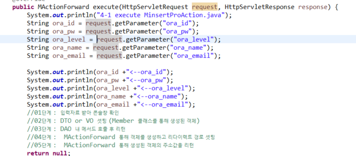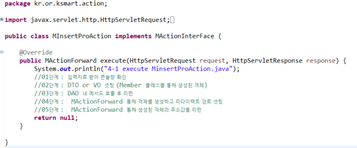 4. else if 문으로 action 에 MInsertProAction 주소값을 할당한다.