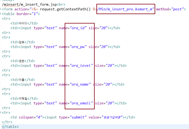 <form action="<%= request.getContextPath() %>/Min/m_insert_pro.ksmart_m" method="post">