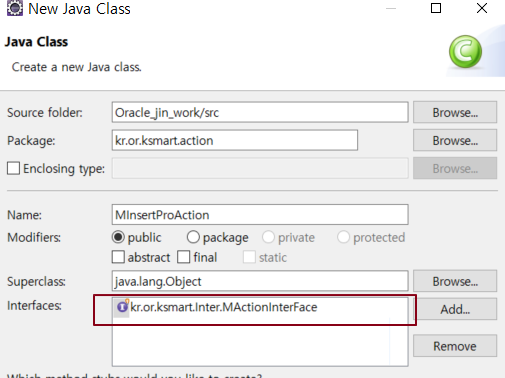8. MInsertProAction은 MActionInterFace을 구현한다.