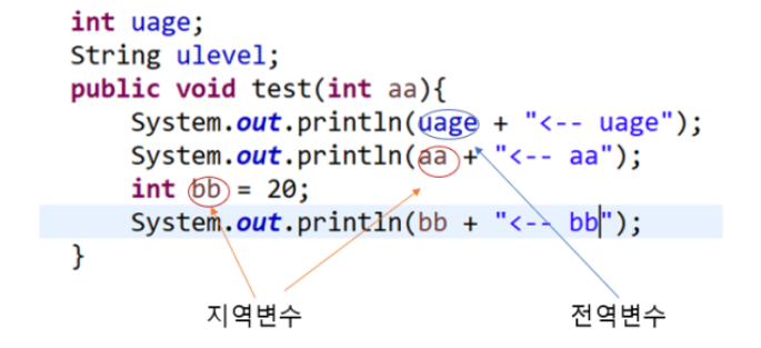 전역변수 : 주어진 프로그램 어디에서나 접근이 가능. 클래스 블록 안쪽에 메서드 블록 밖에 선언된 변수다